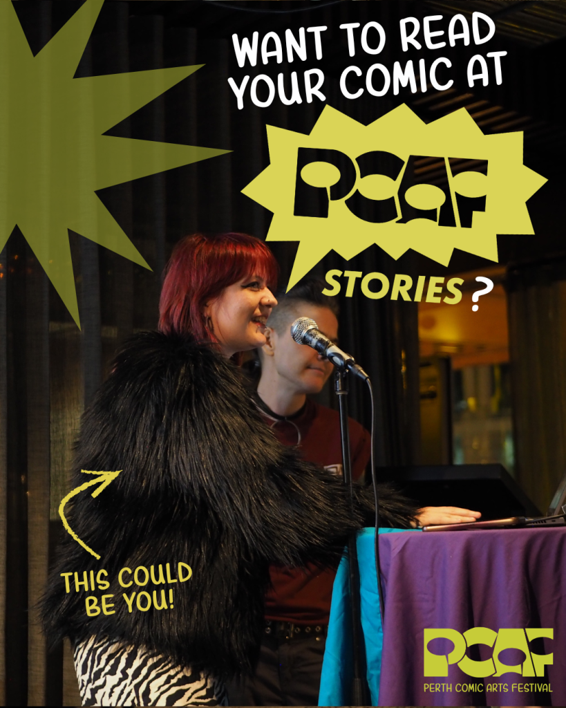 Do you make comics? Do you want to read your comics out loud to a live audience of comic lovers? PCAF Stories is looking for new presenters for the adult PCAF Stories that will be held on Thursday 12 March at the Shoe Bar in Yagan Square. If you are based in WA or will … <a title="Expressions of Interest for PCAF Stories is OPEN" class="read-more" href="https://pcaf.org.au/eoi-pcaf-stories-2026/" aria-label="Read more about Expressions of Interest for PCAF...